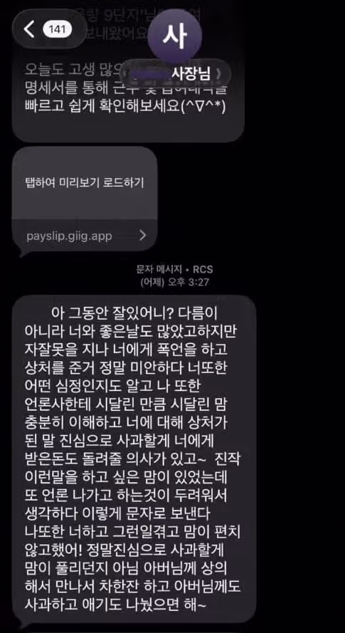 빽다방 550만원 점주가 피해 알바생한테 보낸 사과(?) 문자 jpg