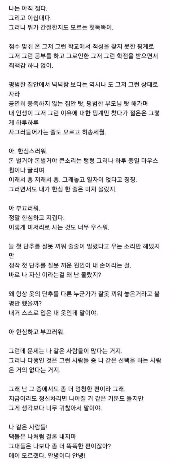 개똥밭에 굴러도 이승이 낫다 했음 지금 바닥이면 올라갈 일만 남은건데...