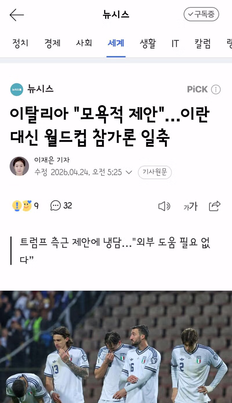 이탈리아 "모욕적 제안"…이란 대신 월드컵 참가론 일축
