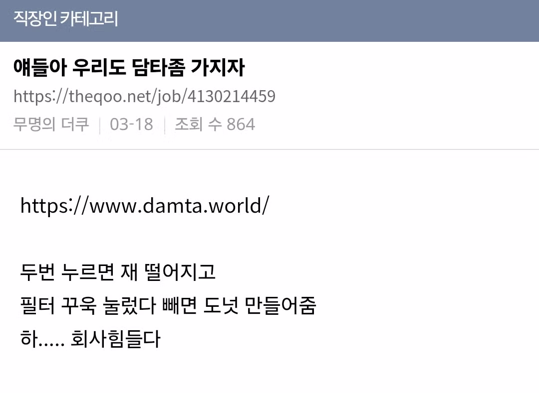 애들아 우리도 담타좀 가지자 (온라인 흡연실 생김☕️)