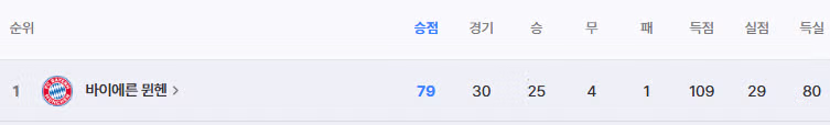 의외로 평균 득점이 이번 시즌 뮌헨보다 낮은 팀
