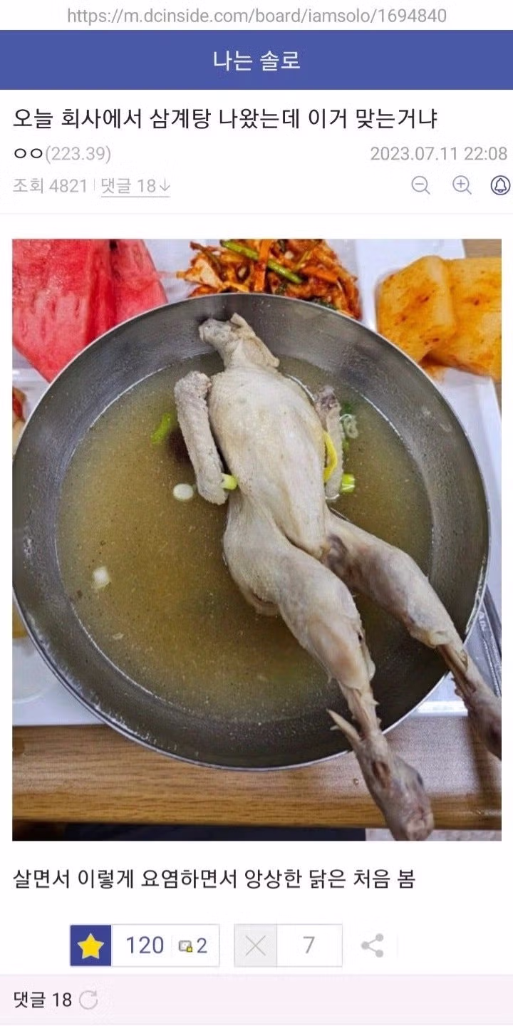 오늘 회사에서 삼계탕 나왔는데 이거 맞는거냐