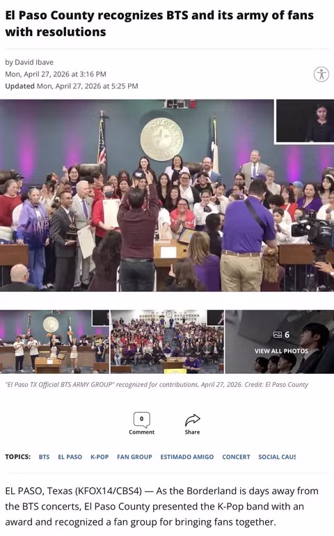 엘파소, BTS와 아미를 위한 두 개의 결의안 승인 - 밈카세