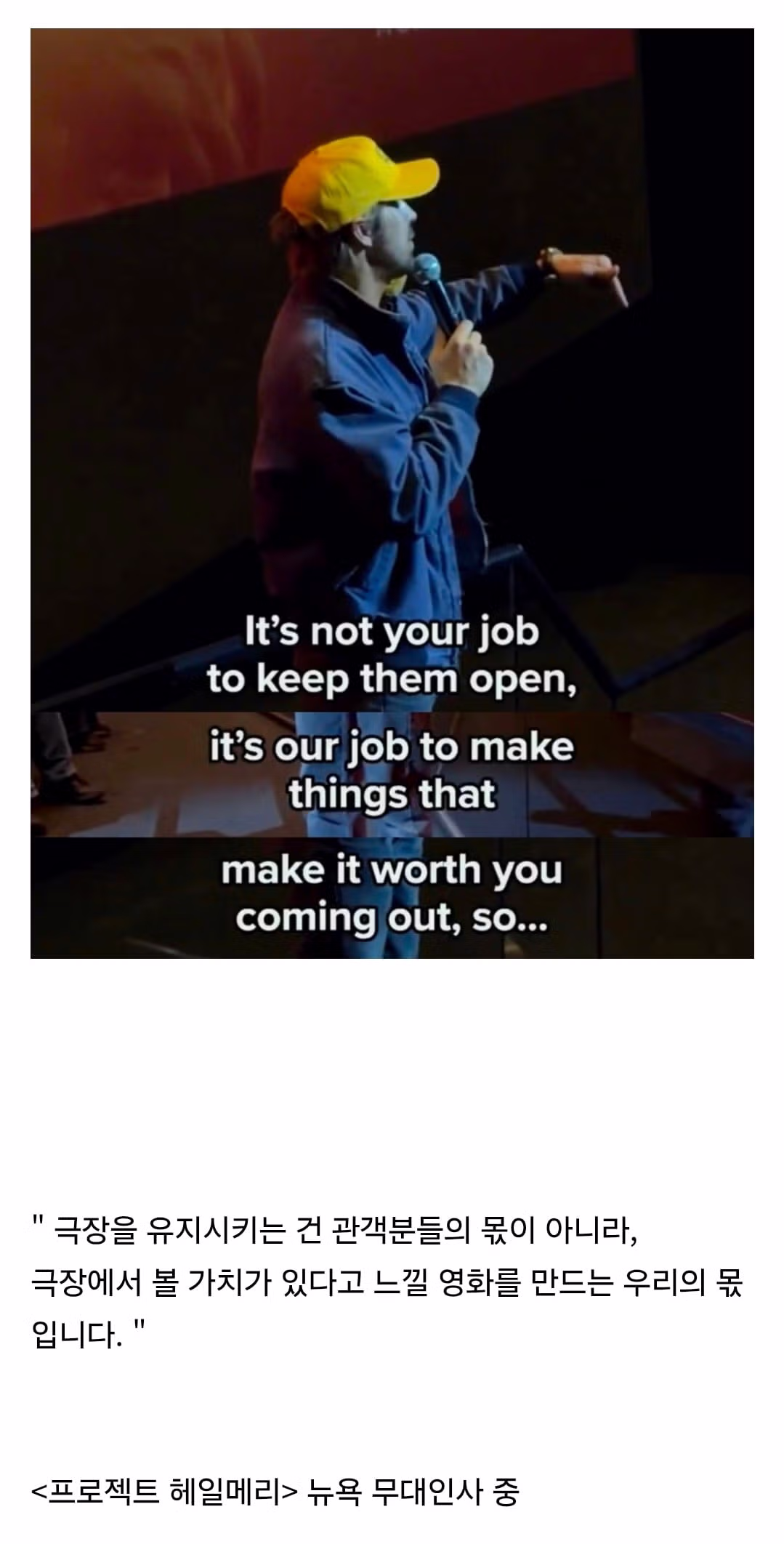 <프로젝트 헤일메리> 라이언 고슬링의 극장 흥행에 대한 발언.jpg