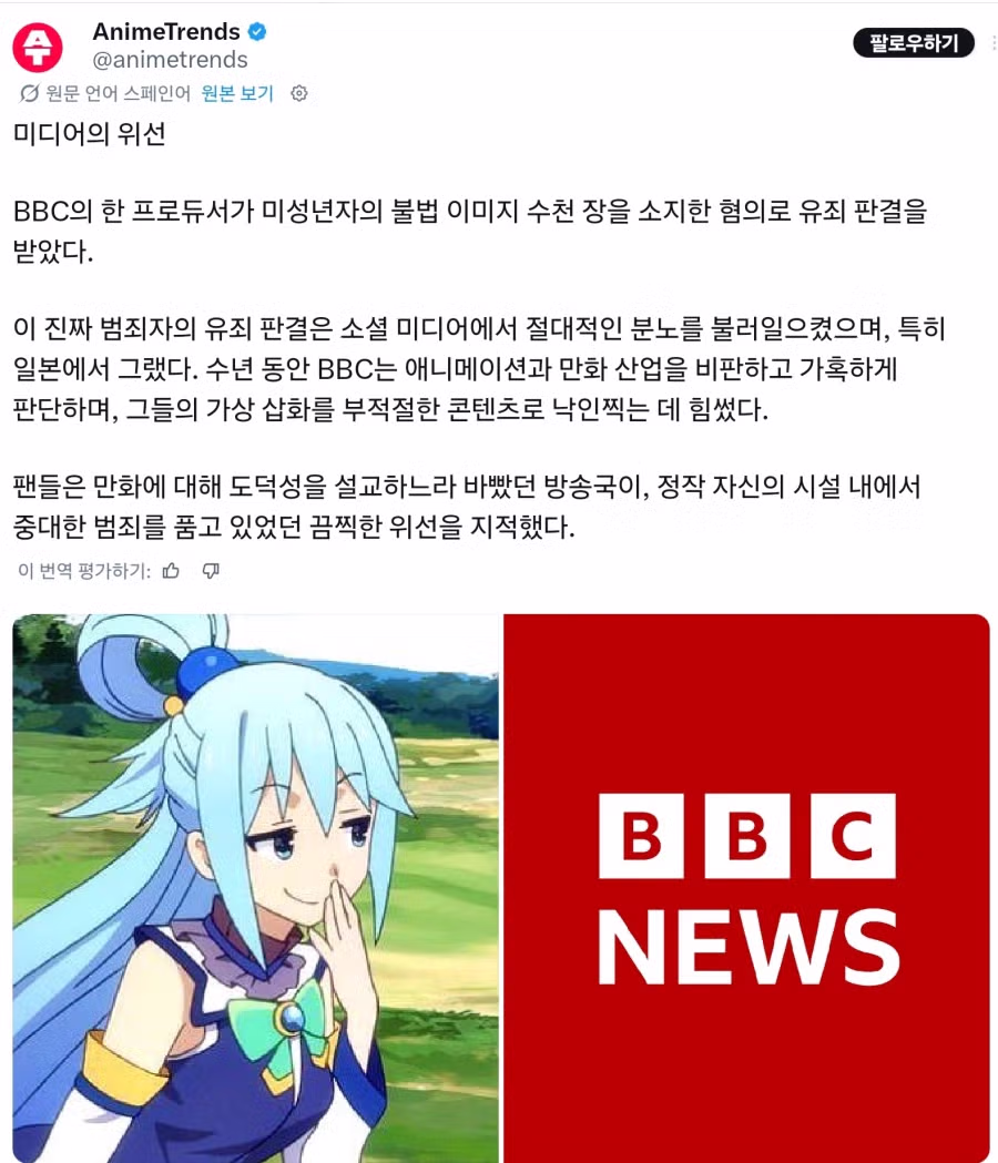영국 방송 bbc뉴스의 프로듀서, 미성년자 불법 이미지 소지로 유죄 판결