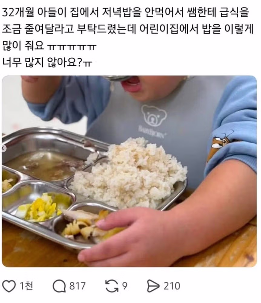 어린이집은 간이되어있고. 집밥은 간이 아예없으면 저럴수도