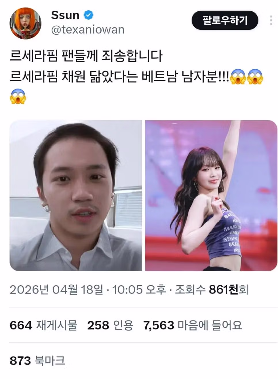 르세라핌 김채원 닮았다는 베트남 남자.jpg