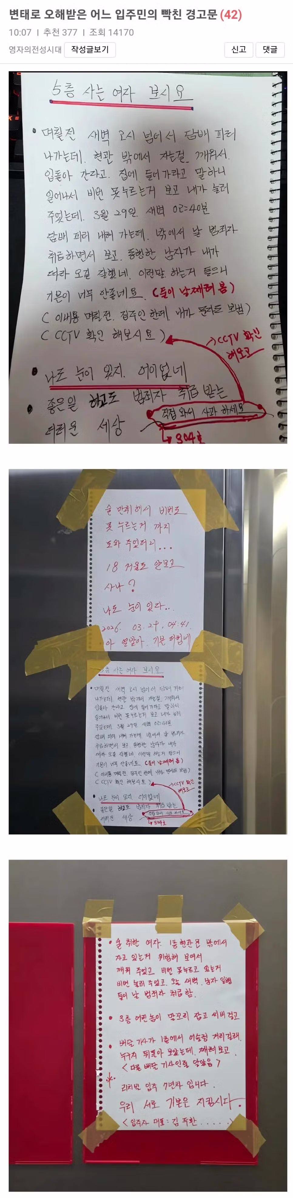 변태로 오해받은 어느 입주민의 빡친 경고문