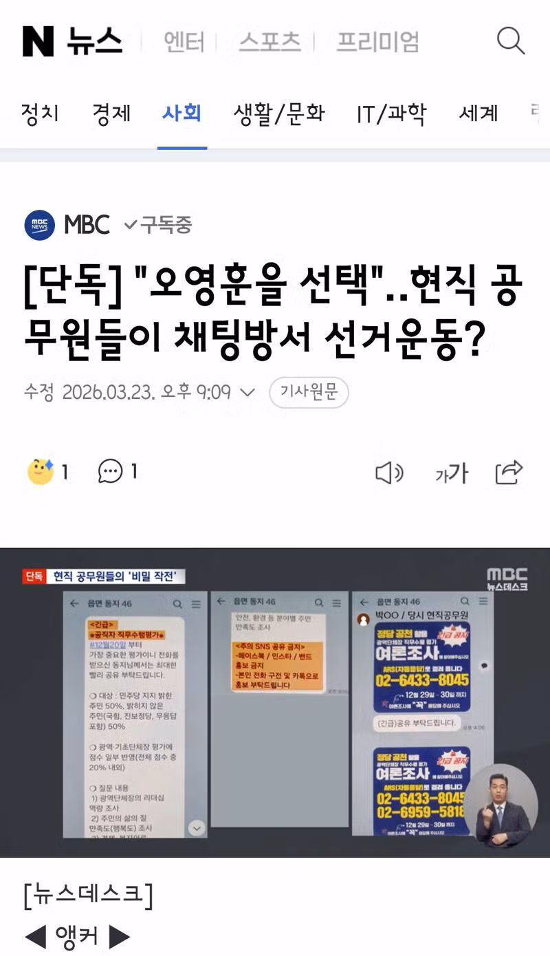 오영훈을 선택"‥현직 공무원들이 채팅방서 선거운동?