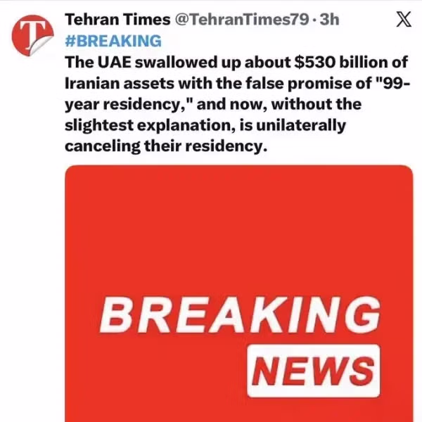 UAE "이란이 두바이에 입금한 자산 약 800조원 압수"