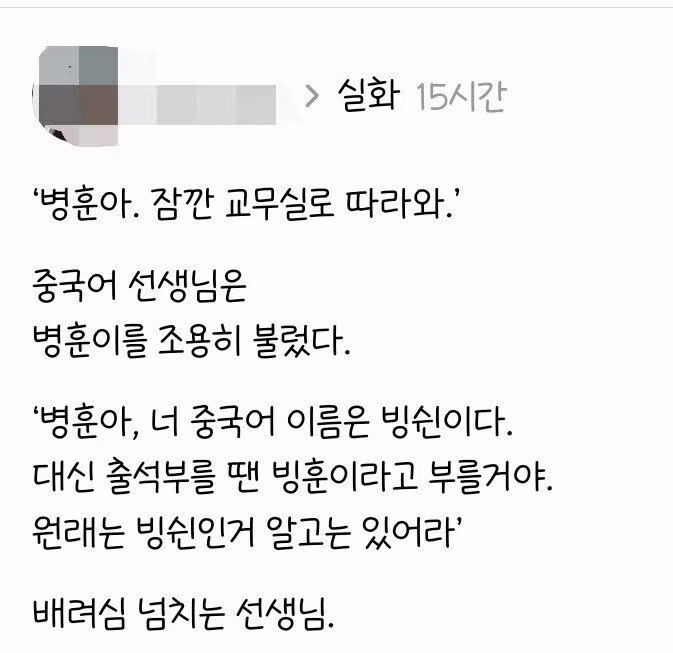 선생님에게 빙쉰이라고 불린 학생 ㄷㄷ