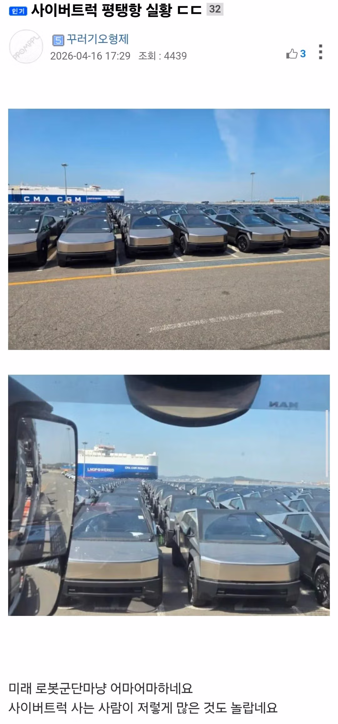 평택항에 들어온 사이버트럭