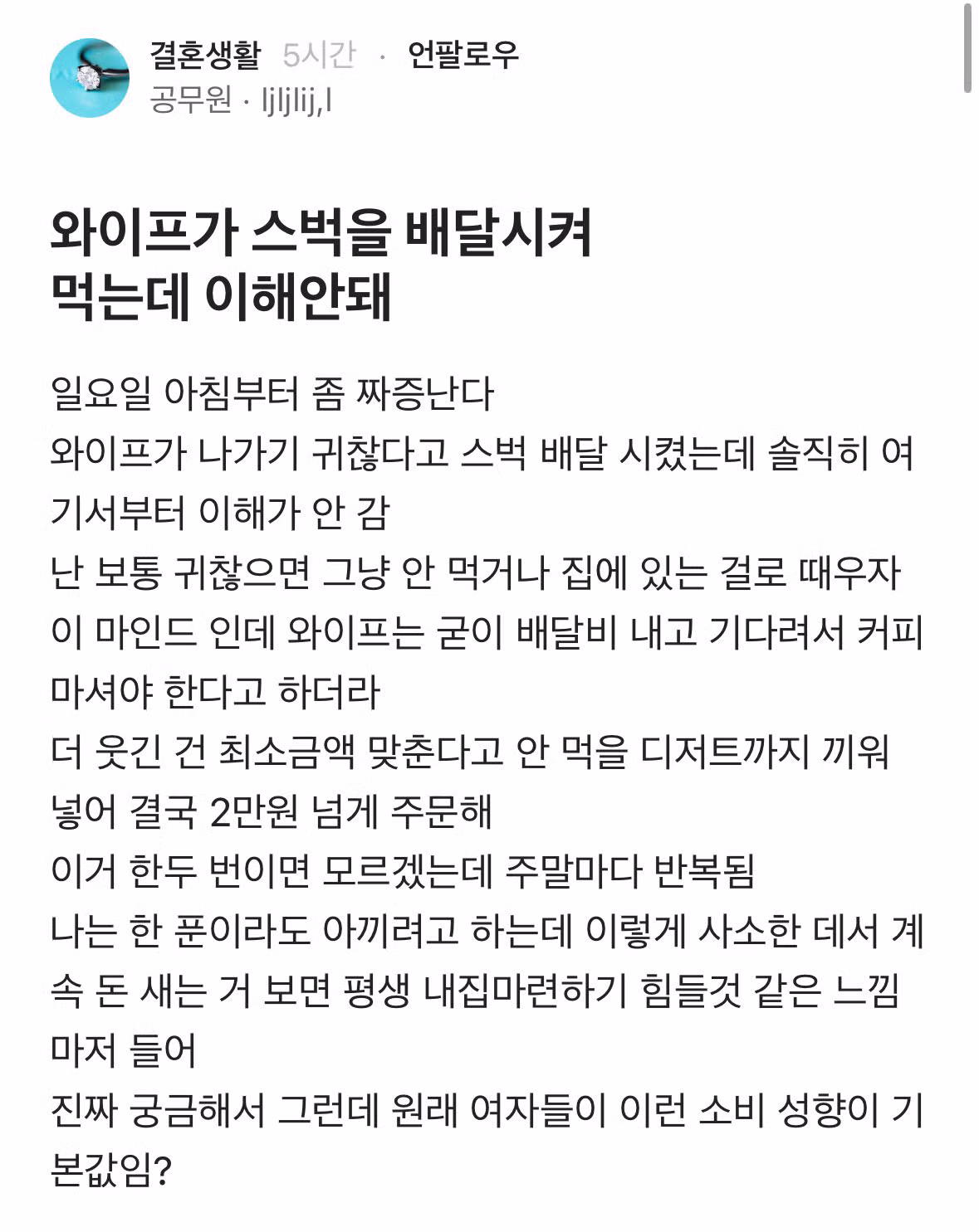 여론이 반반인 와이프 스벅 배달 논란 ㄷㄷ