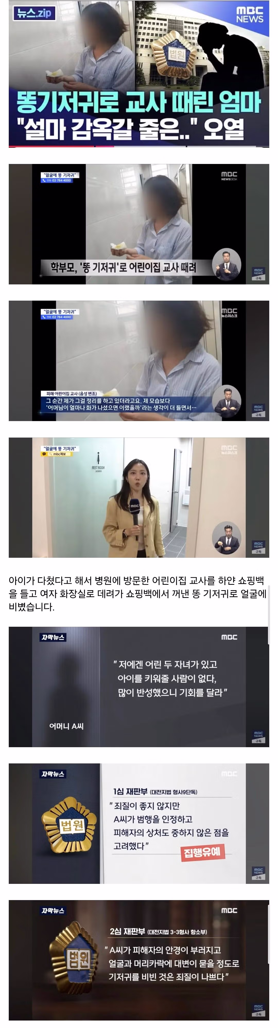 똥기저귀를 보육교사 얼굴에 뭉갠 엄마 근황..