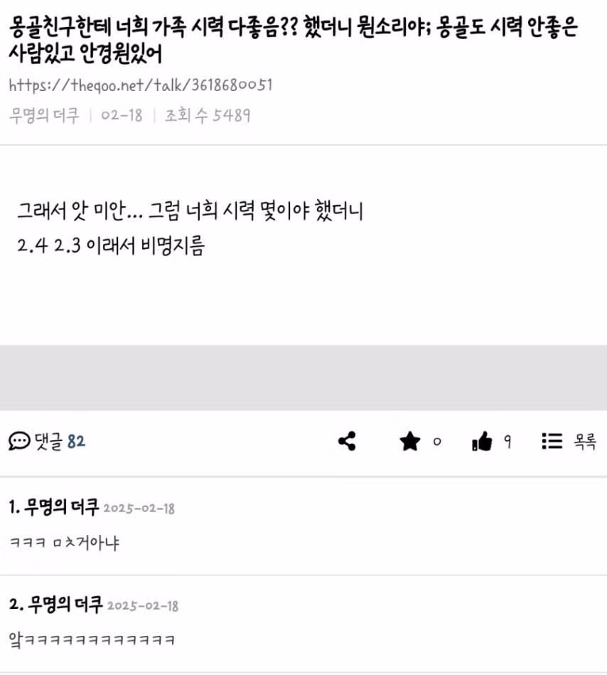 몽골친구한테 너희가족 시력 디 좋음? 했더니