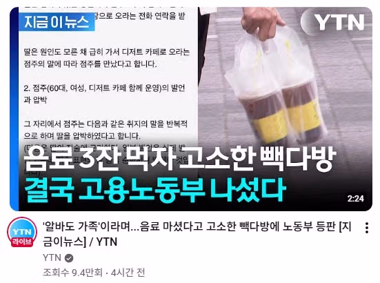 알바 3잔 고소 사건... 카페명 당당히 까버리는 YTN