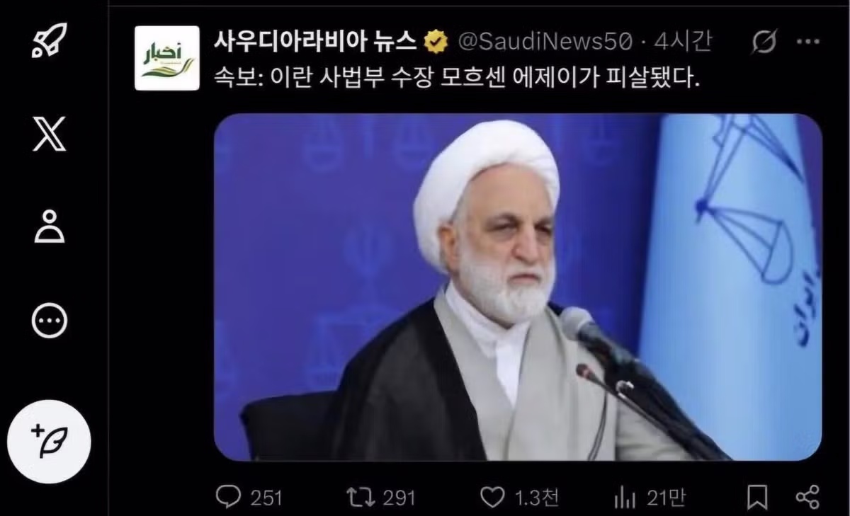 속보)이란민주화 시위대 8천명에 사형때린 대법원장도 이스라엘에게 피살ㄷㄷㄷ