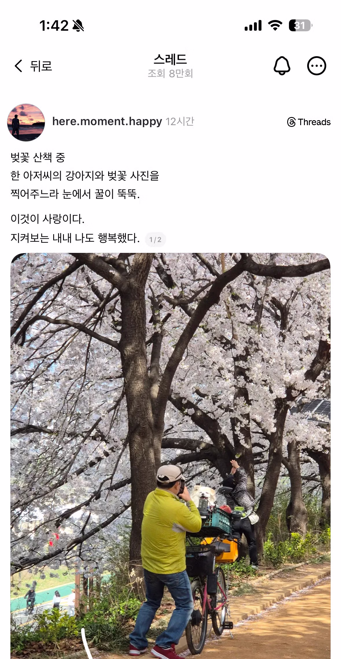 벚꽃 구경 중 마주한 아저씨와 댕댕이