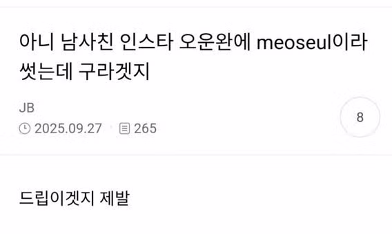 아니 남사친 인스타 오운완에 meoseul 이라고 썼는데 구라겠지