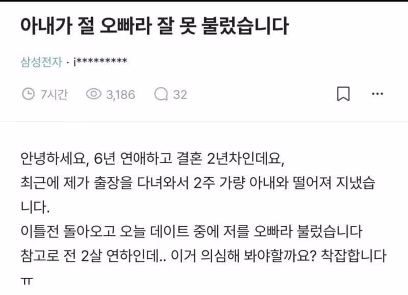 아내가 저를 오빠라고 잘 못 불렀습니다