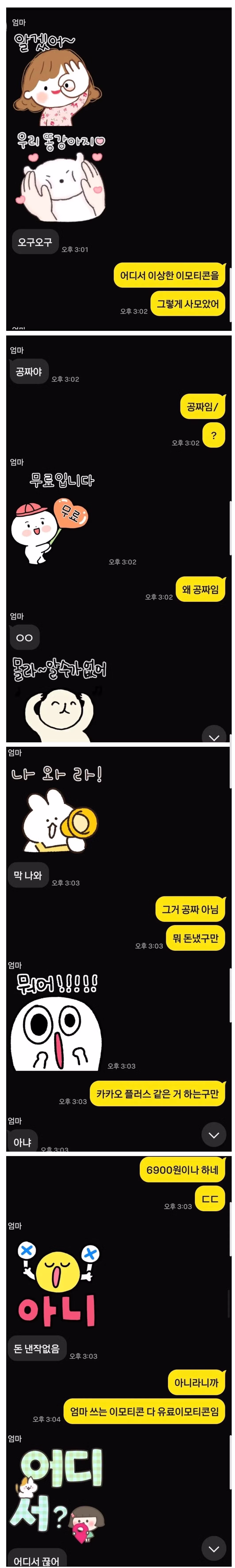카카오 무료(?) 이모티콘 사용하는 엄마