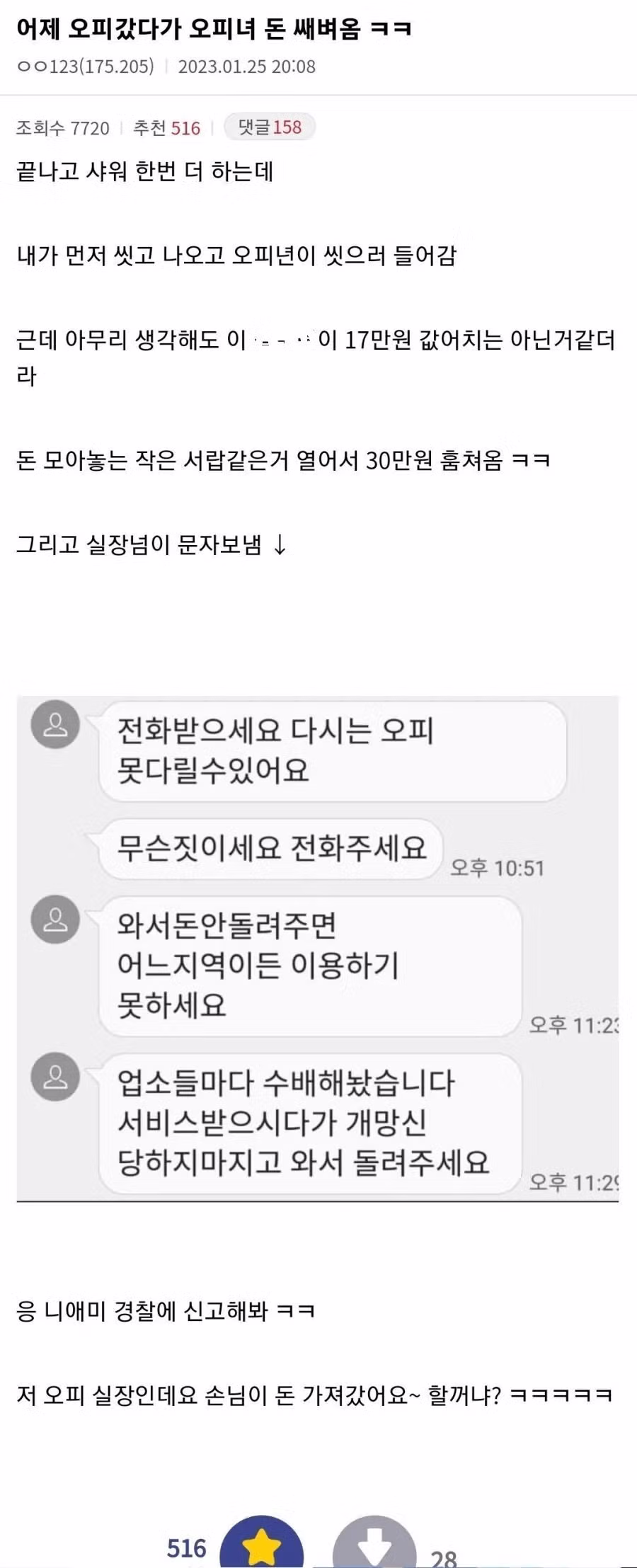 오피 갔다가 오피녀 돈 훔친 남자..