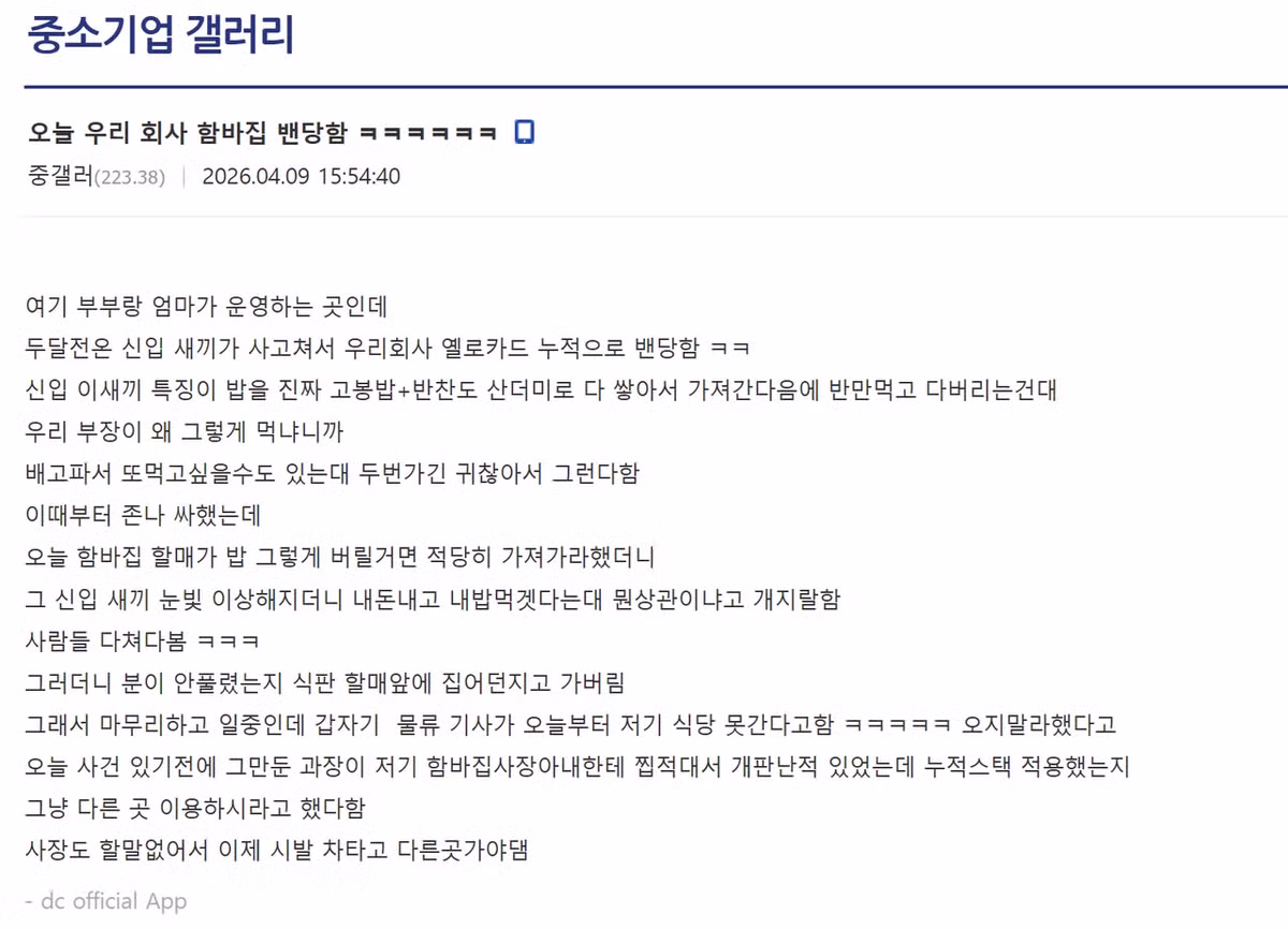 함바집 밴 당한 중소기업