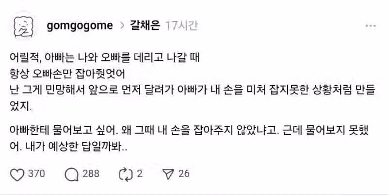 항상 오빠 손만 잡는 아빠가 미웠어...