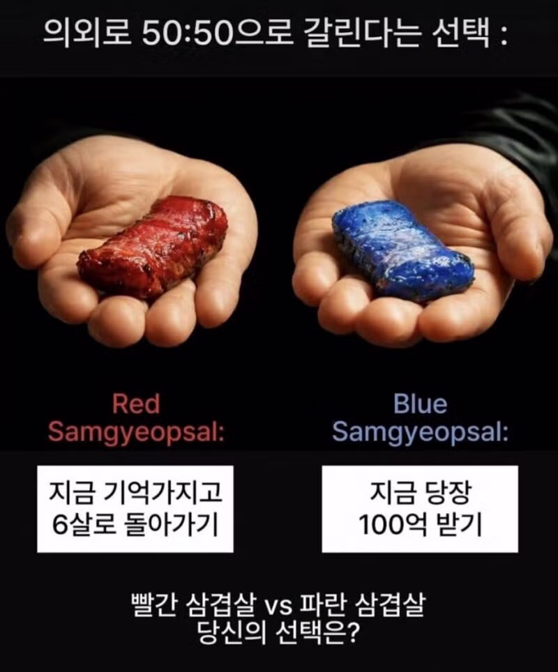 의외로 반반으로 갈린다는 빨강,파랑 삼겹살 선택