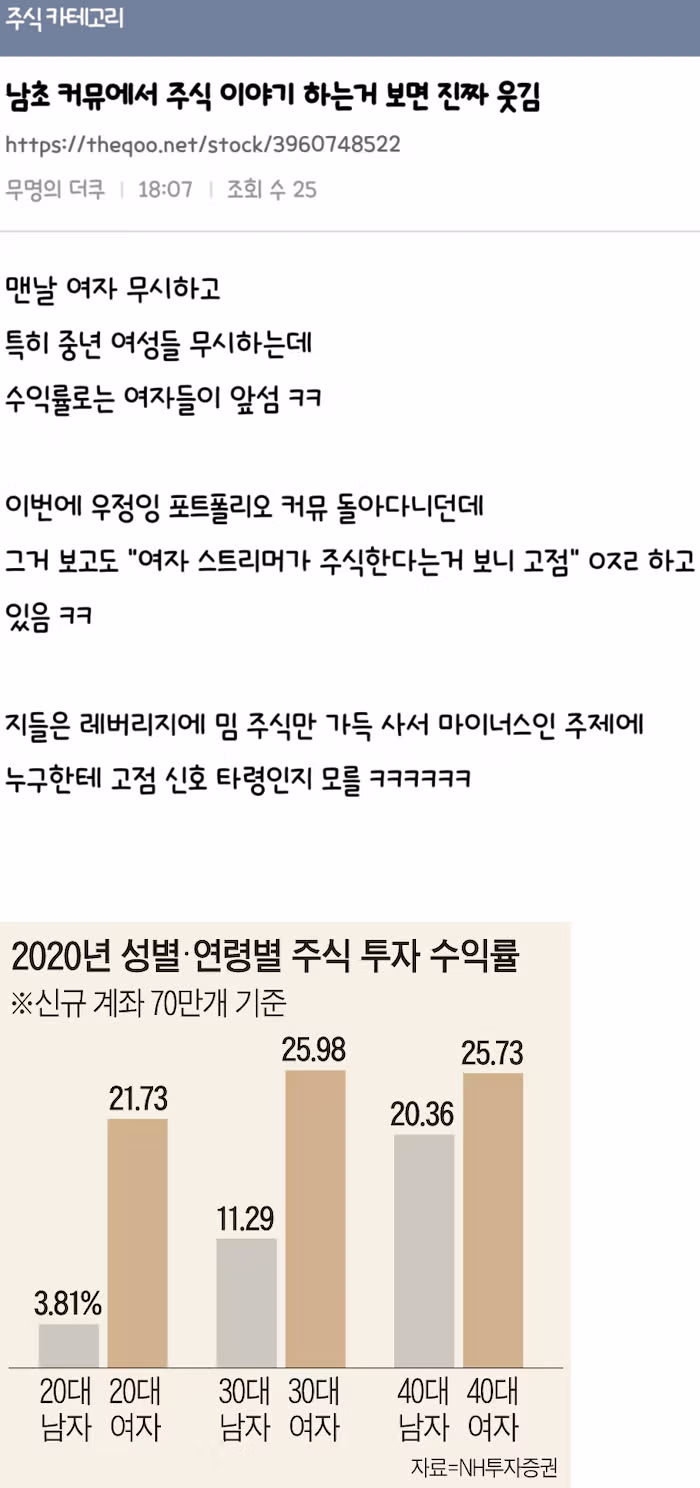 남초 커뮤에서 주식 이야기하는 거 보면 진짜 웃김