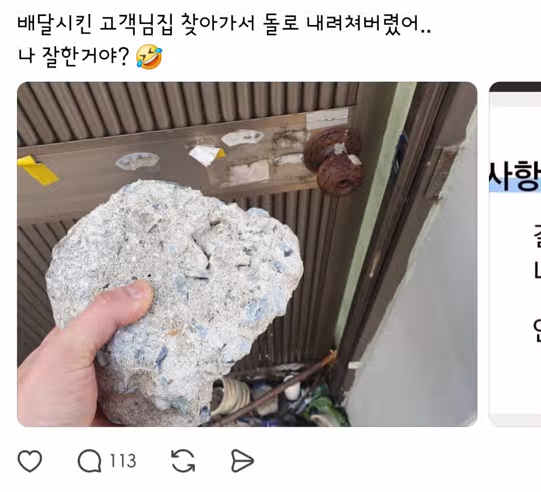 배달시킨 집 문짝 짱돌로 내려치는 딸배