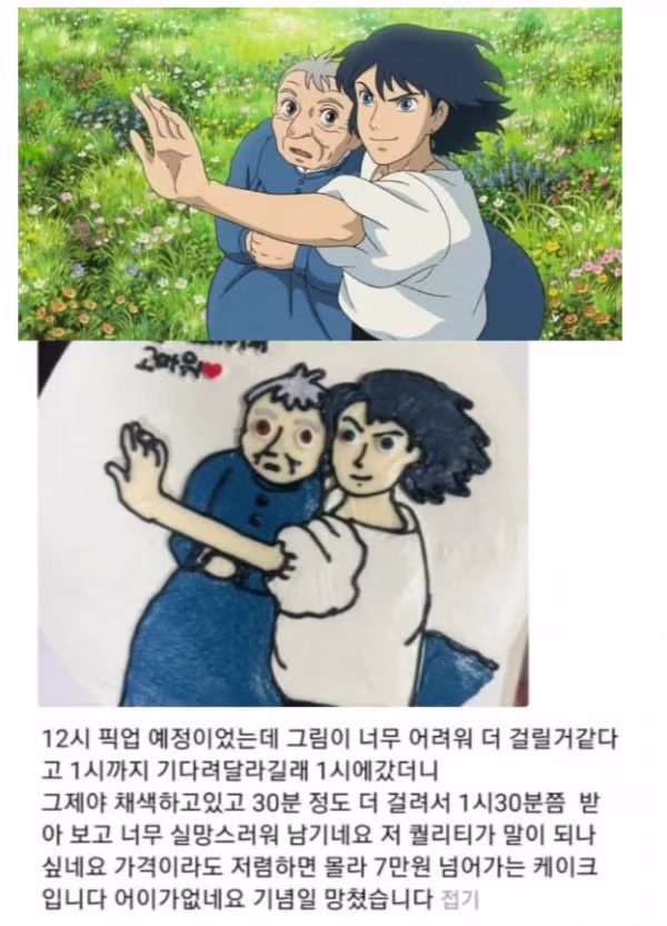 기념일위해 주문한 7만원짜리 케이크에 실망