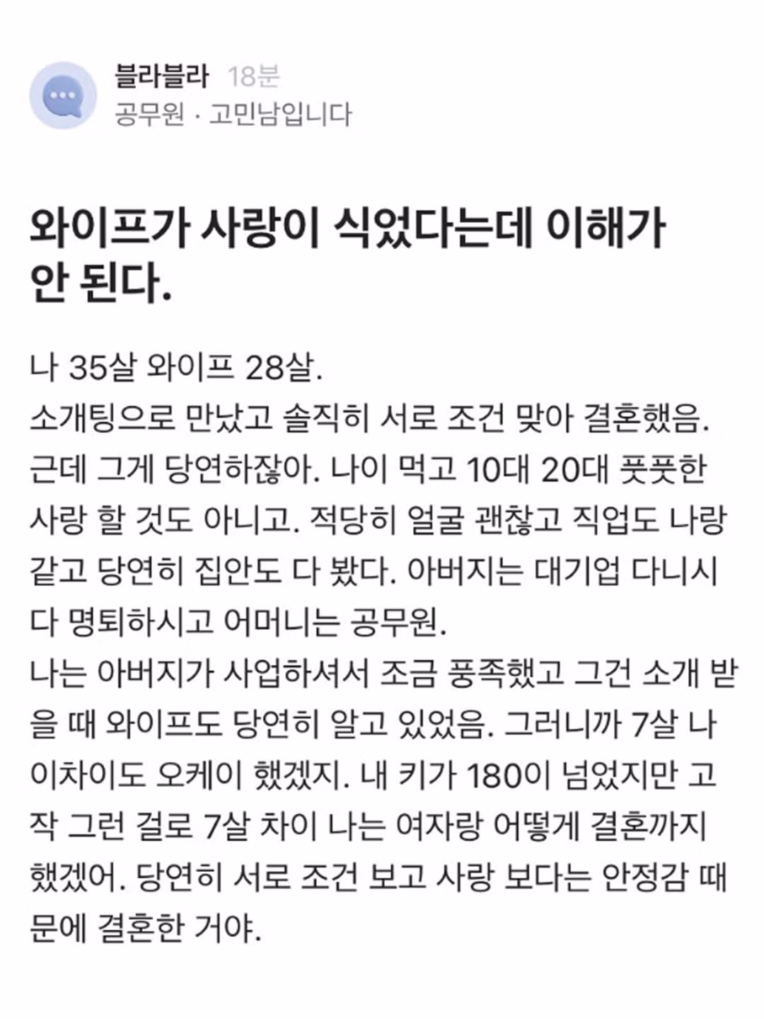 사랑이 식었다고 우는 와이프가 이해 안 됨