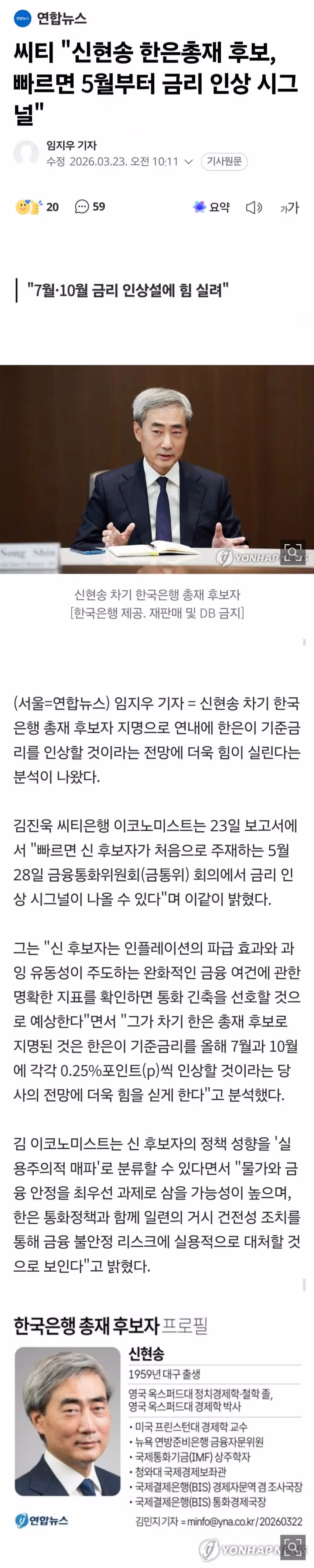 신현송, 올해 7월·10월 두차례 금리인상 가능성