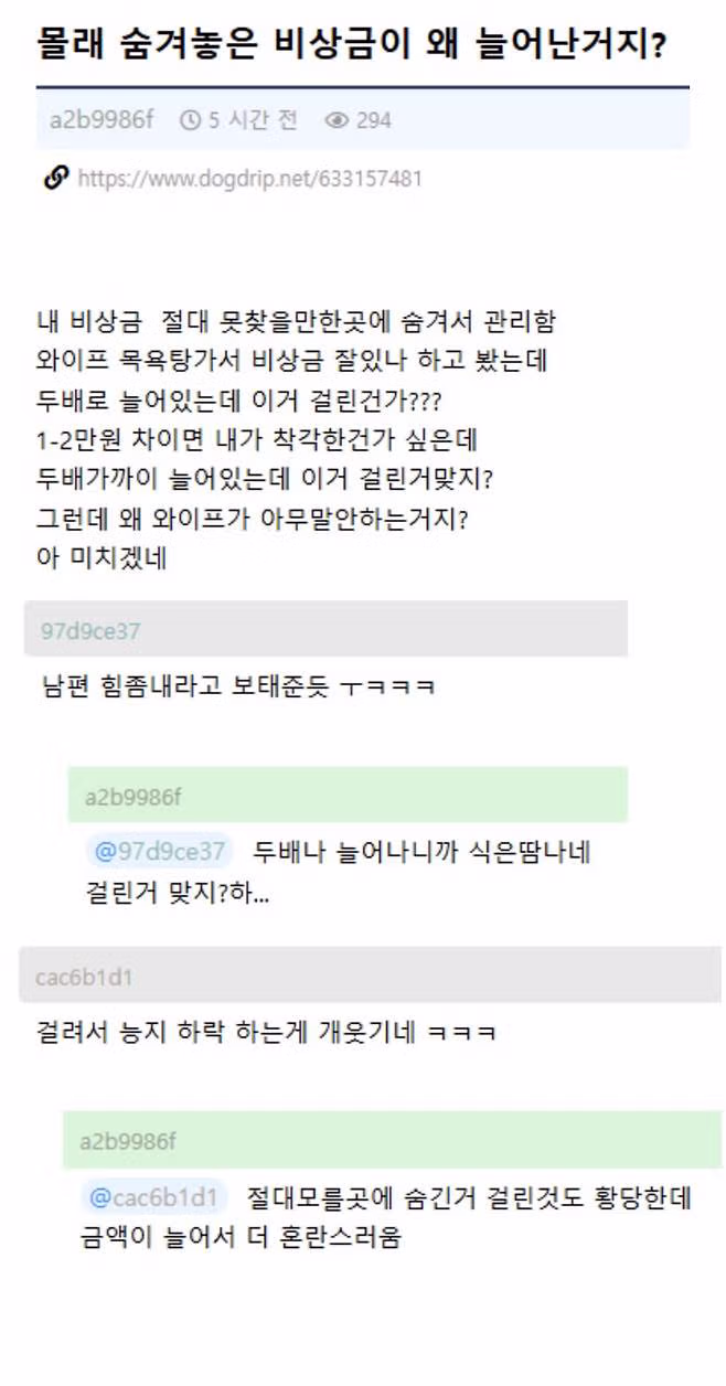 비상금이 늘어나서 놀란 유부남