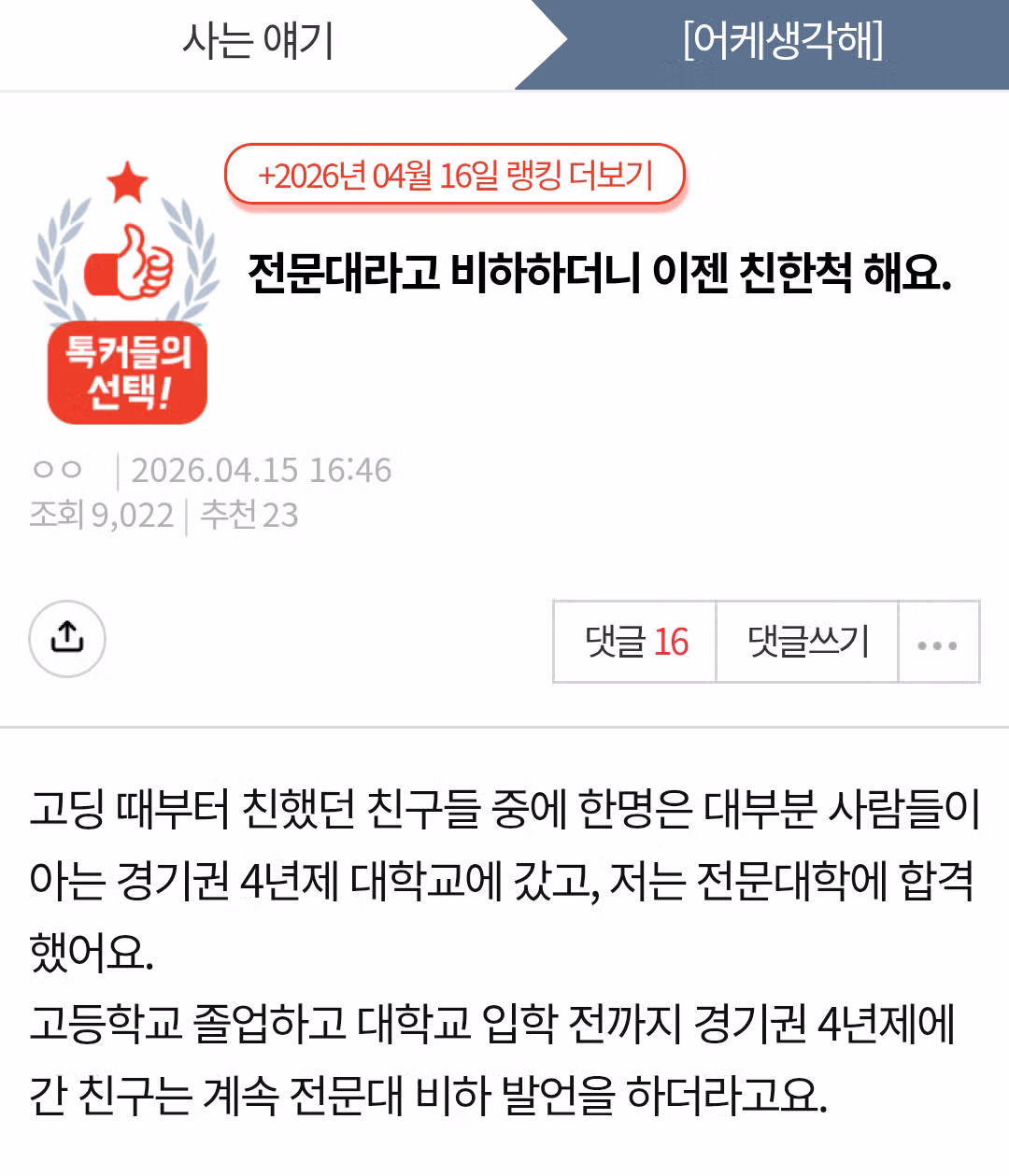 전문대 다닌다고 비아냥 대던 친구.jpg