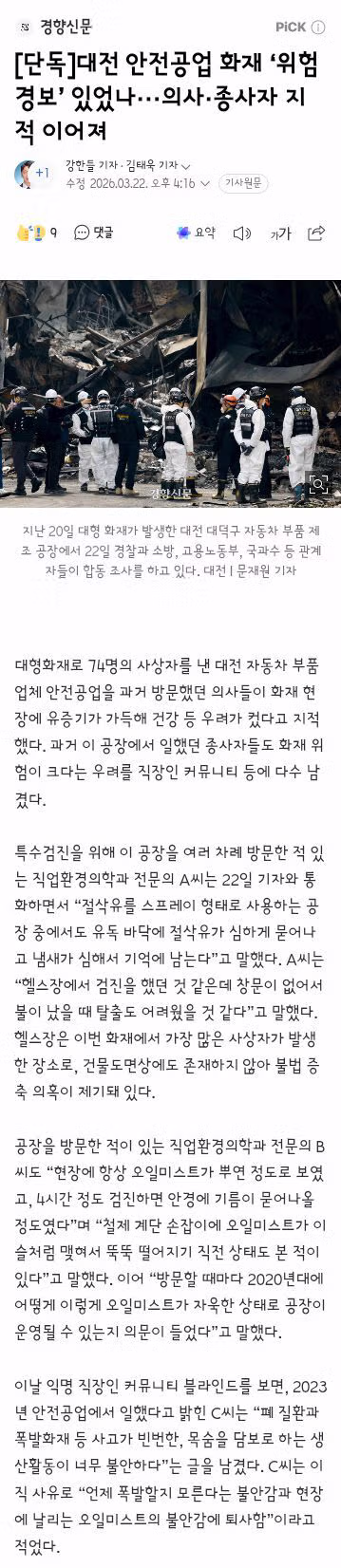 창문도 탈출로도 없고 유증기 가득한 환경이라니.. 너무 안타깝네요