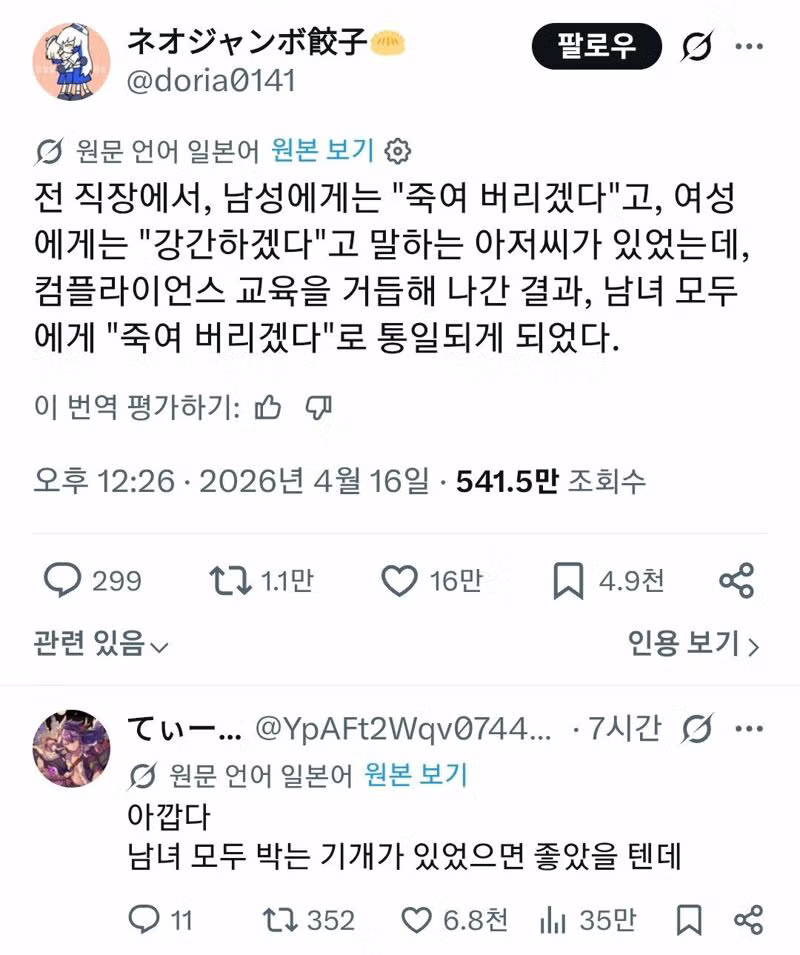 컴플라이언스 교육을 통해 남녀평등사상을 받아들인 前 직장상사
