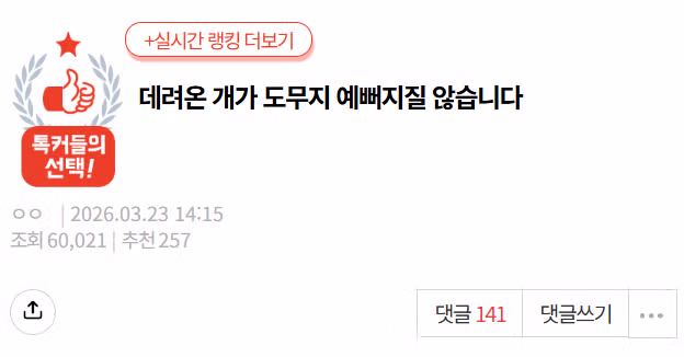[네이트판] 데려온 개가 도무지 예뻐지질 않습니다
