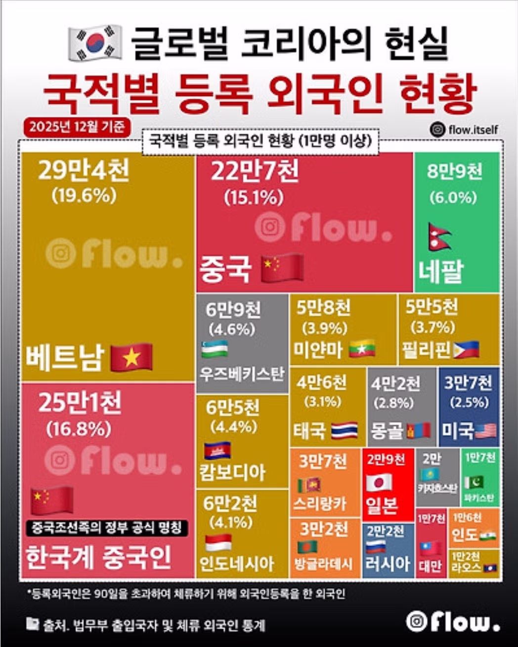 한국에 살고 있는 외국인 국적 순위