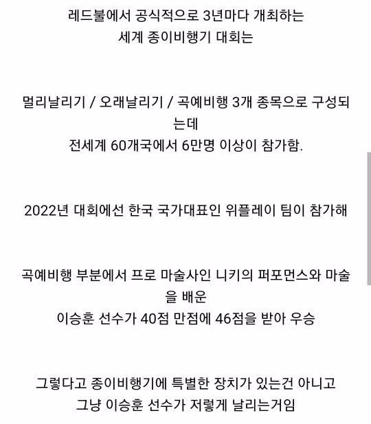 세계 종이비행기 대회 한국인 우승자