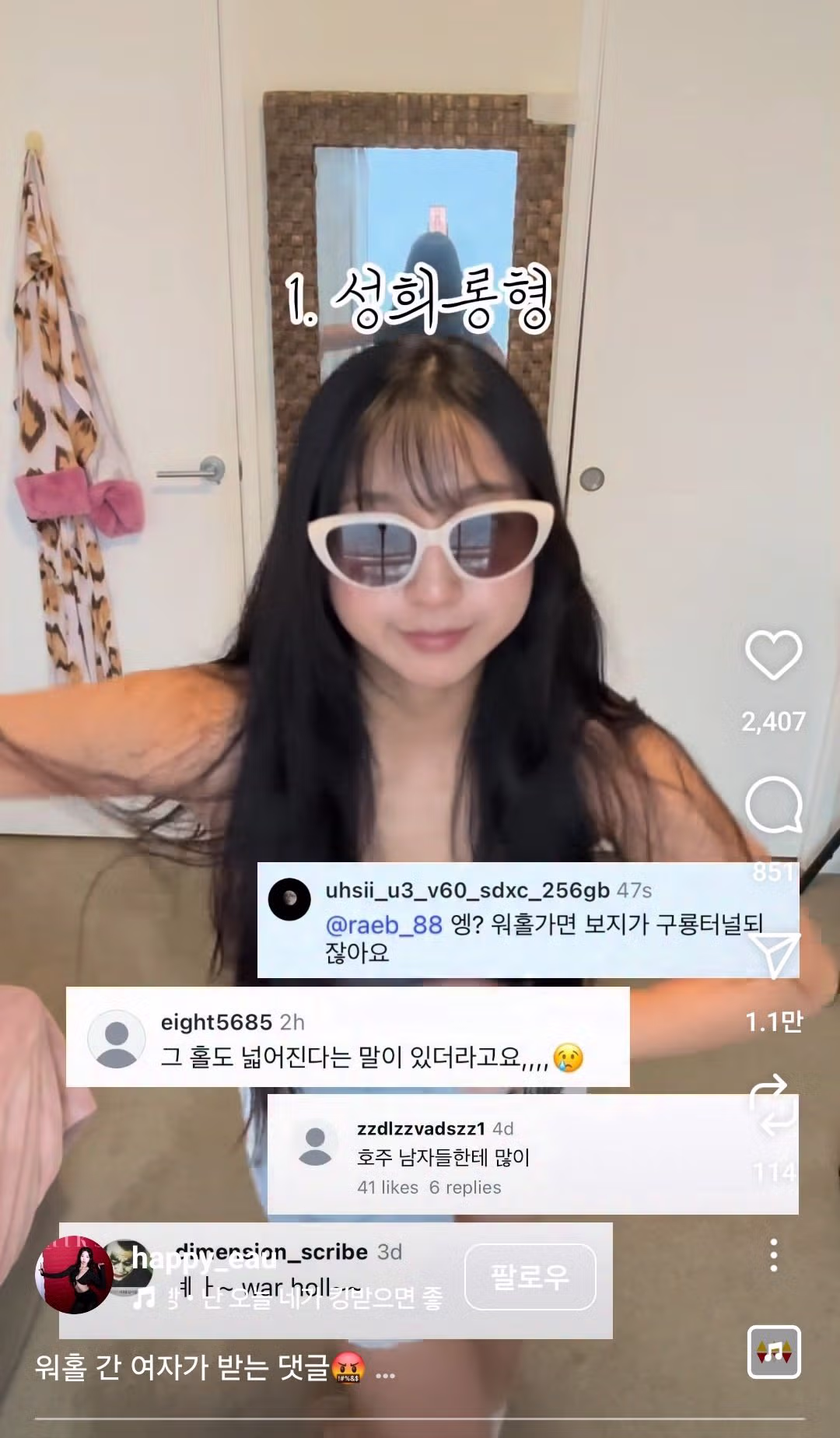 워홀 간 여자가 받는 댓글