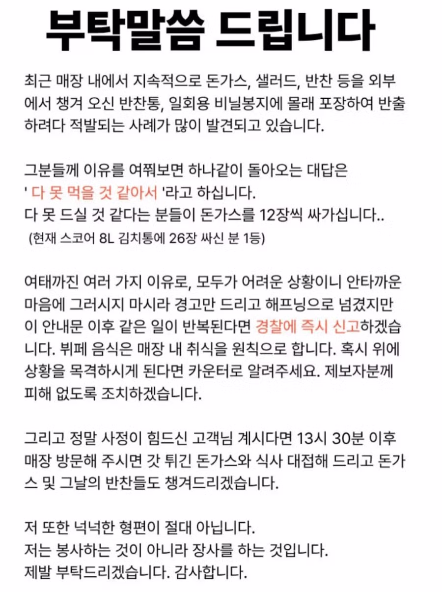 무한리필 돈가스 사장님이 남기는 부탁말씀