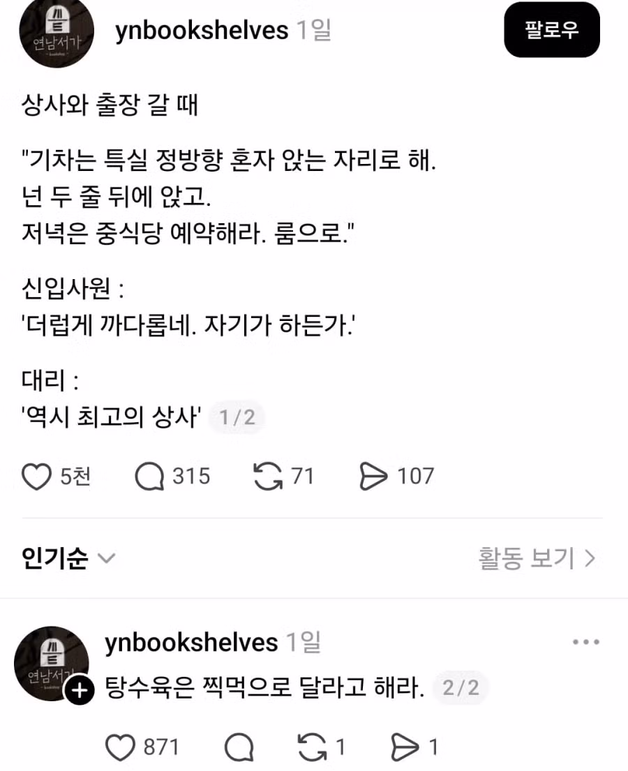 저건 명확하게 지시해주는 상사지. 더럽게 까다로운건 목표만 지시한 담에 세부사항 가지고 하나하나 태클거는 타입이고