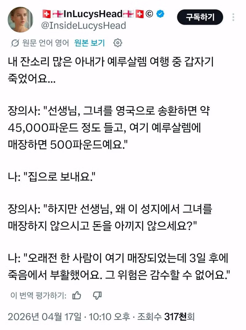 성지 순례 중 죽은 아내를 그곳에 매장하면 안 되는 이유