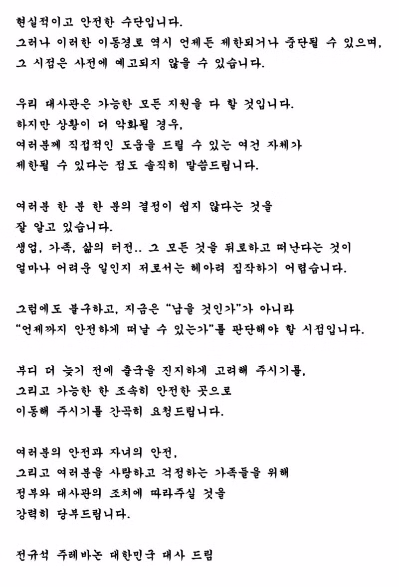 주 레바논 대사의 교민 대상 공지
