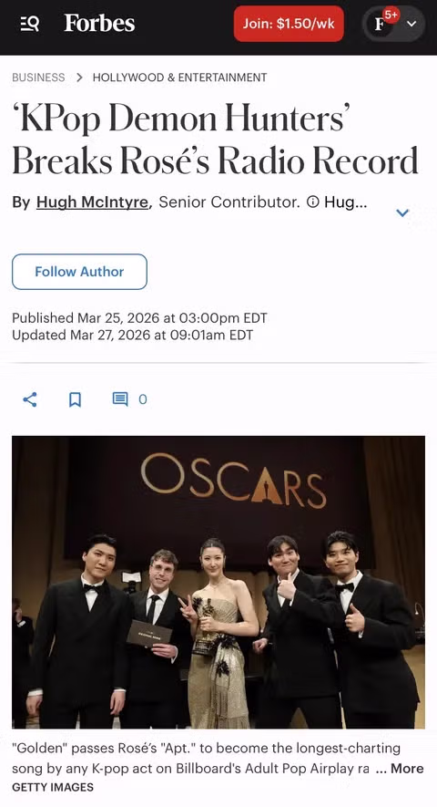 포브스 “케데헌이 로제의 라디오 기록을 깼습니다.”