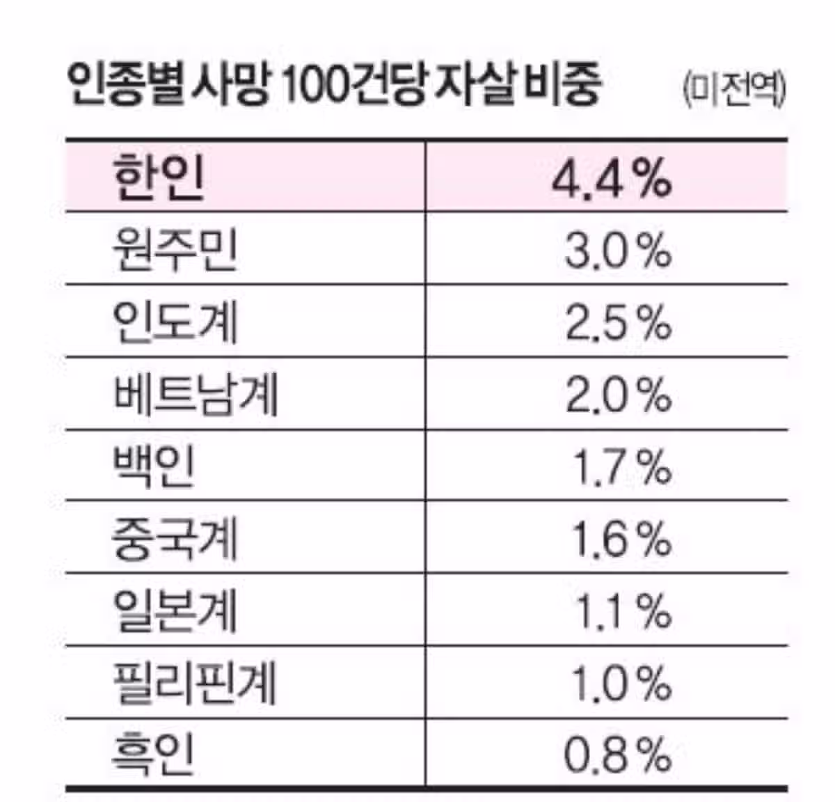 미국인 자살 비율
