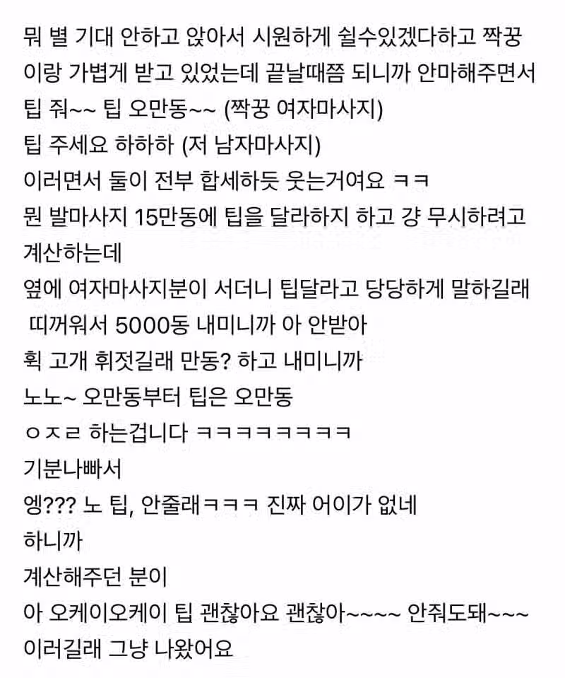 이제 동남아에서 팁주면 받는 반응