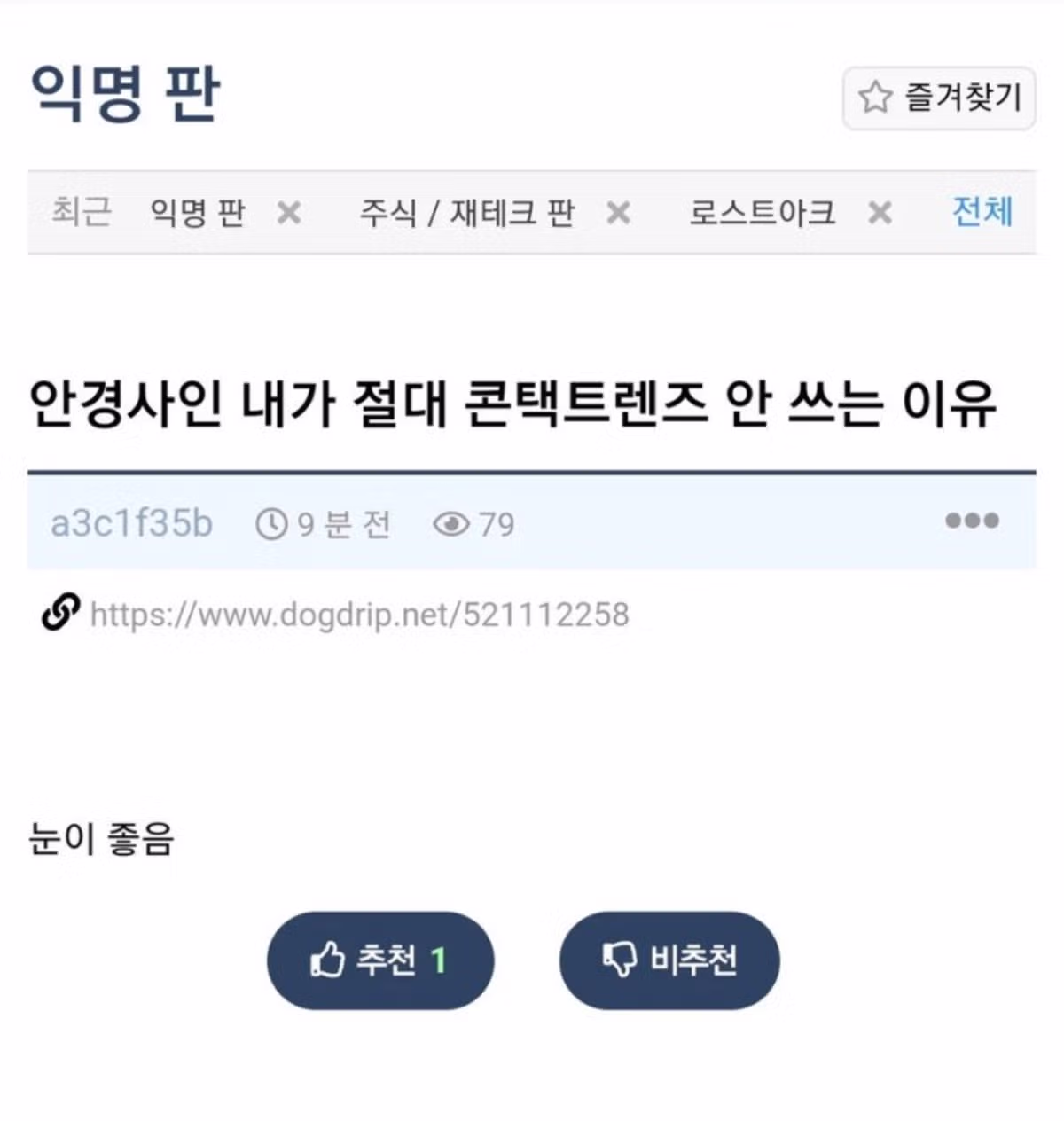 어느 안경사가 절대로 콘택즈렌즈 안 쓰는 이유